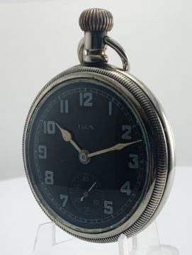 Elgin WW2 1941 Military Pocket Watch Manual Wind Military Mark On Case/Movement Arabic Numerals Black Dial