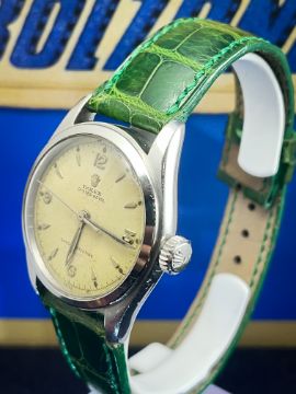 The Rolex Oyster Royal Ref. 6144, produced in the 1950s, is a quintessential vintage timepiece that showcases Rolex's renowned craftsmanship and the innovative Oyster case. Designed as a more accessible model within the brand’s lineup, Ref. 6144 offers the iconic durability and precision Rolex is known for, making it an excellent introduction to the world of luxury watches. Affordable Luxury: The Ref. 6144 was marketed as a more accessible model within Rolex’s range, offering the same Oyster case protection and quality craftsmanship found in higher-end models like the Submariner and Datejust.