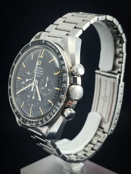 The Omega Speedmaster Professional from around 1965 is a landmark piece in the history of both Omega and wristwatches in general. Widely recognized as the "Moonwatch," this version of the Speedmaster Professional is notable for its historical significance, iconic design, and technical performance, which contributed to its role as the official chronograph of NASA astronauts during the Apollo missions. The 1965 model is one of the early versions of the Speedmaster that became synonymous with space exploration.