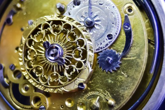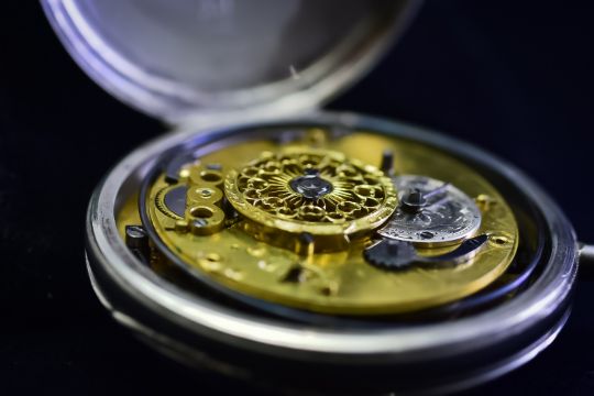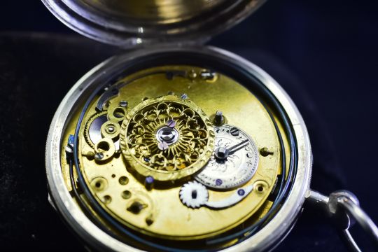 Mechanism and Functionality: This pocket watch features a verge fusee movement, renowned for its precision and reliability. The quarter repeater function allows the owner to hear chimes at quarter-hour intervals by simply pressing down on the crown, making it not only a timekeeping device but also a charming auditory experience.
