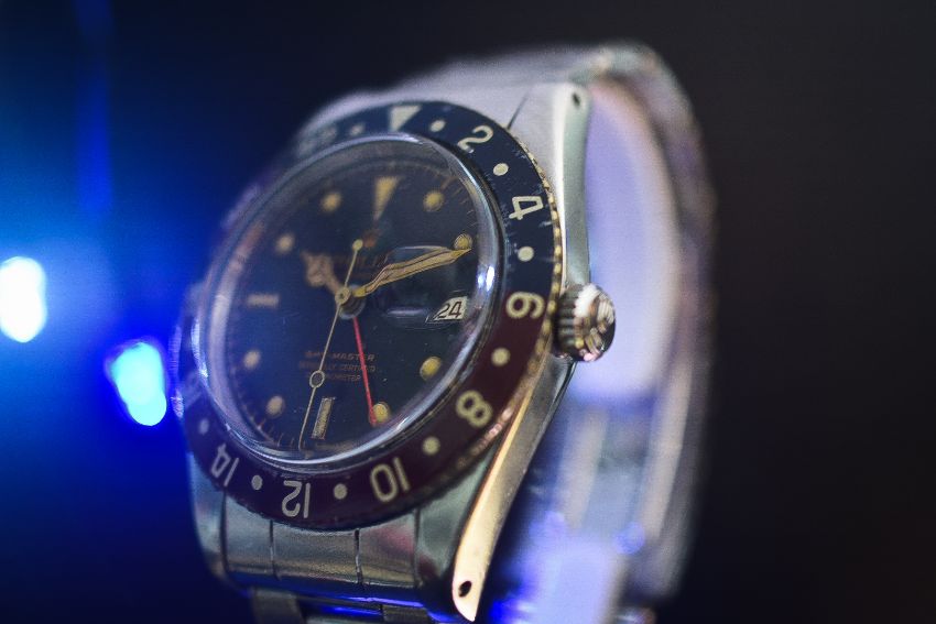 The Rolex GMT Master "Pussy Galore" Date Vintage Radium Dial Men's Wristwatch from the 1950s is a highly collectible and historically significant timepiece, famously associated with the James Bond franchise. This watch, which belongs to the Rolex GMT Master collection, is notable for its distinctive design, military and aviation heritage, and its link to the iconic "Pussy Galore" character played by Honor Blackman in the 1964 James Bond film "Goldfinger".