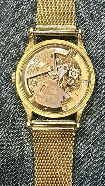The Omega 2516 18k Gold Bumper Men's Watch from the 1950s is a vintage timepiece that combines luxury, precision, and timeless design. Known for its 18k solid gold case, bumper automatic movement, and gold-plated bracelet, this watch is a standout piece in Omega's rich history of craftsmanship and innovation. In the post-war era of the 1950s, Omega was highly regarded for creating watches that featured advanced technical designs with luxurious finishes. The Omega 2516 is no exception, offering an elegant and reliable watch with unique features that make it a prized collector’s item today.