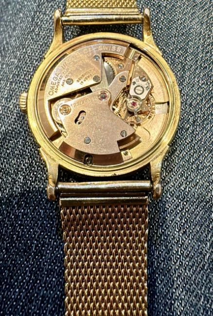 Omega 2516 18k Gold Bumper Men's Watch Gold Plated Bracelet c 1950's